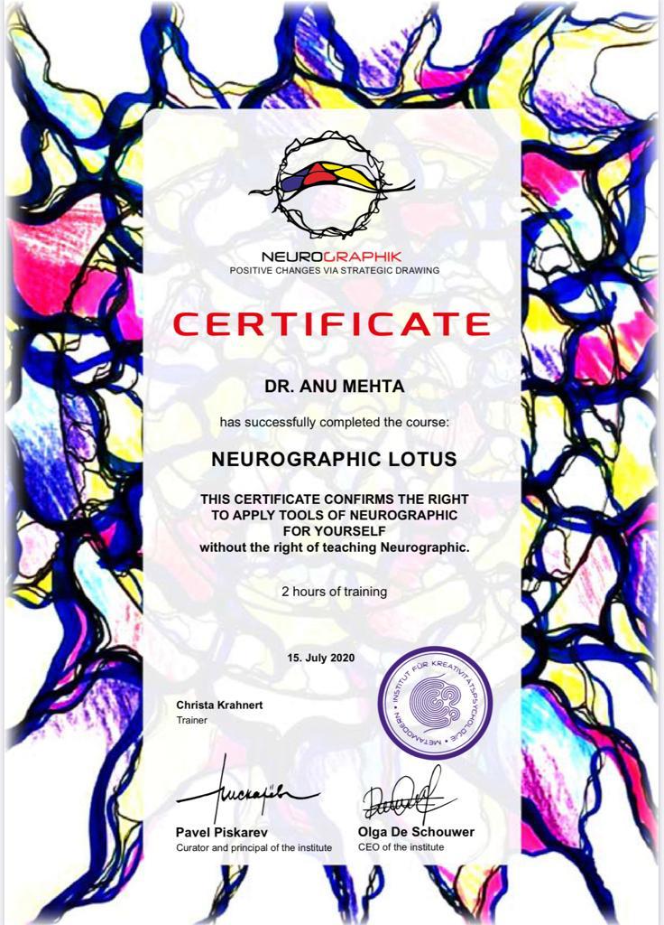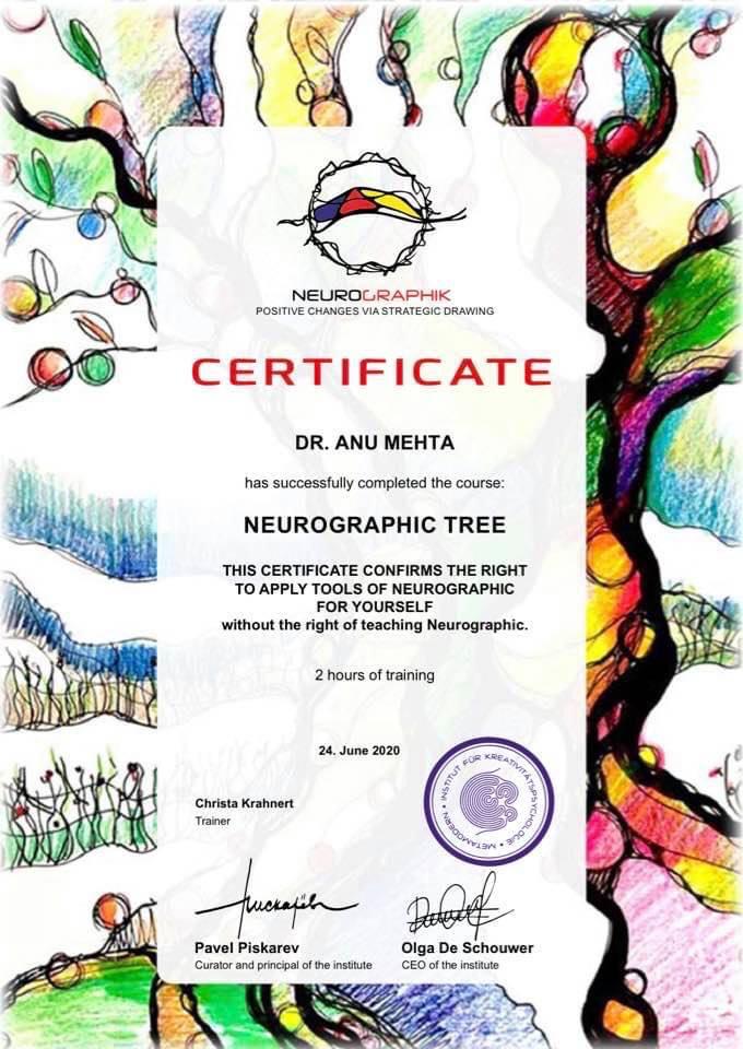 Dr Anu Mehta is training with Alina Smolyansky and Christa Krahnert and has got certified in creating nuerotree and nuerorain.