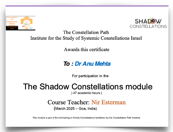Dr. Mehta will host Nir Esterman, an expert in Family and Shadow Constellations, this November in Mumbai, where Nir will lead a profound Shadow Constellation workshop for deep healing and integration